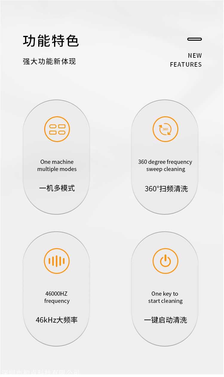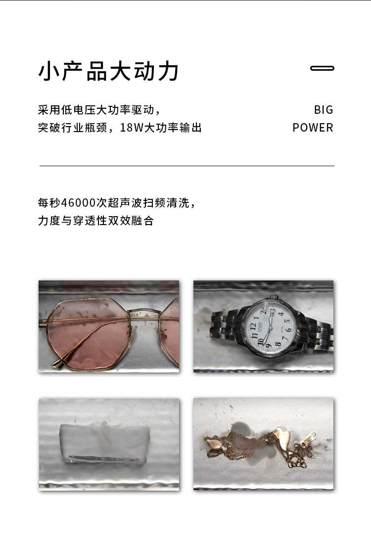 5.超声波扫频清洗每秒46,000次,强度和穿透力双重效用融为一体;